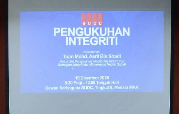 16 Disember 2025 โ Pihak SUDC telah menganjurkan program Pengukuhan Integriti bertempat di Multipurpose Hall SUDC. Program ini diwajibkan dihadiri oleh semua staf SUDC bertujuan memahami kepentingan nilai integriti dalam pekerjaan, membuat refleksi dan intervensi kendiri, meningkatkan kesedaran untuk menyumbang kepada inisiatif pembudayaan integriti serta memupuk semangat kerjasama dan persefahaman antara warga SUDC.
